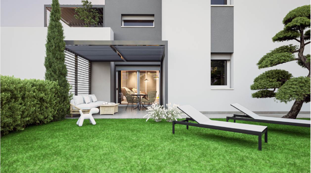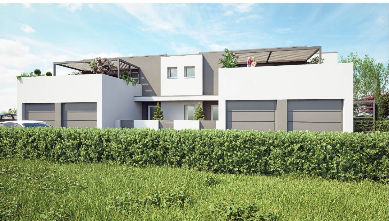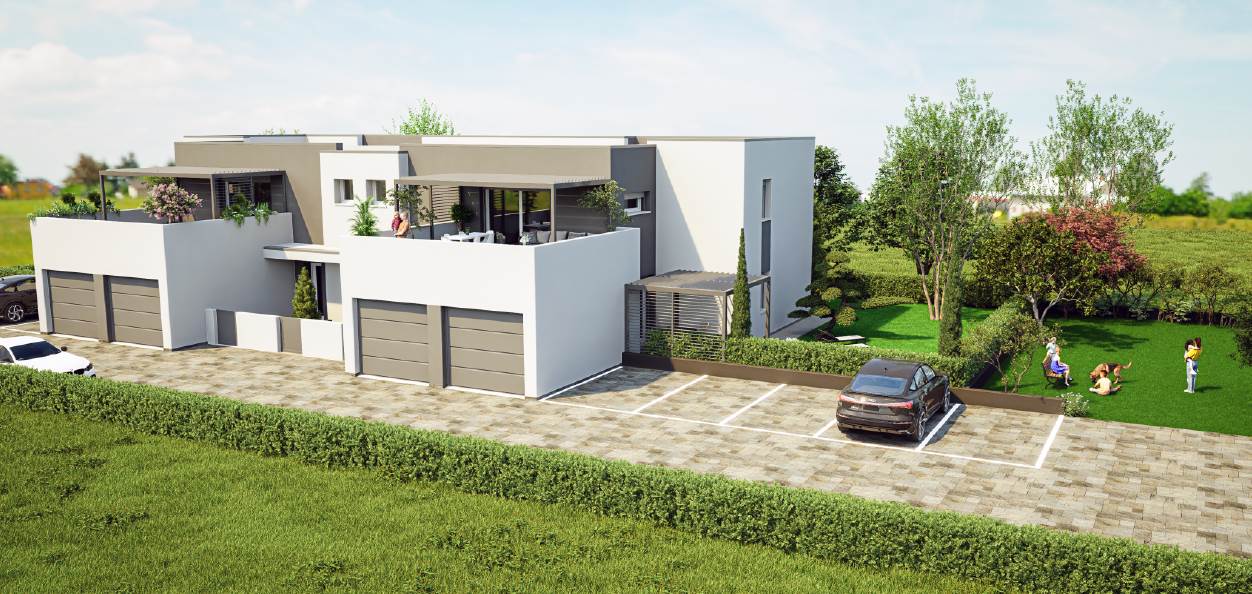 Ogni unità è progettata con attenzione ai dettagli, inclusi riscaldamento a pavimento e impianto fotovoltaico da 4,5 kW, assicurando efficienza energetica e comfort. Gli appartamenti al piano terra vantano un accesso indipendente e uno spazio verde privato, collegato alla zona giorno tramite un'ampia vetrata scorrevole. I due appartamenti al piano primo, con le stesse caratteristiche distributive di quelli del piano terra, sono dotati di un' ampia terrazza di 37 mq collegata direttamente al living. A disposizione degli appartamenti inoltre un garage singolo ed un posto auto privato oltre a parcheggi comuni per i visitatori.