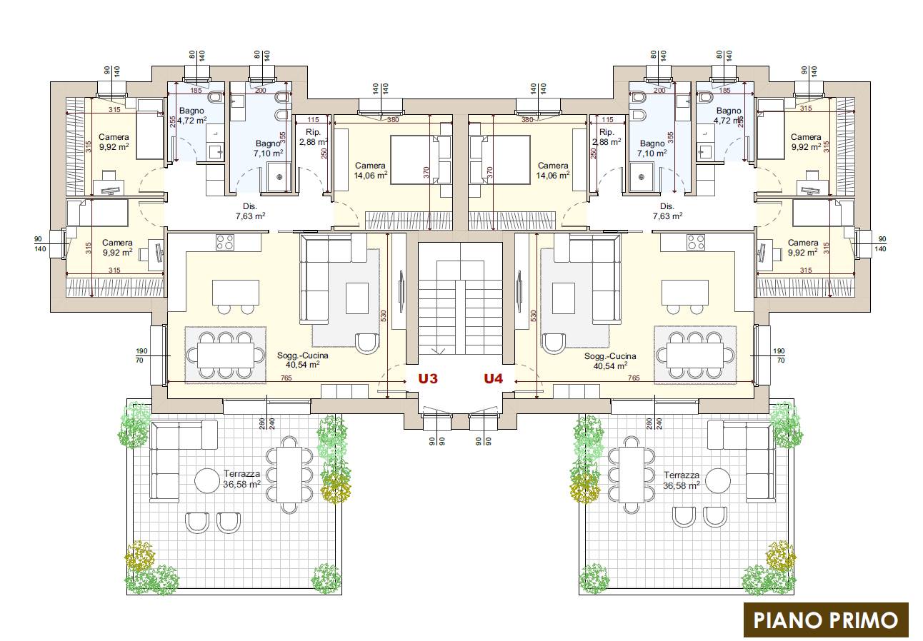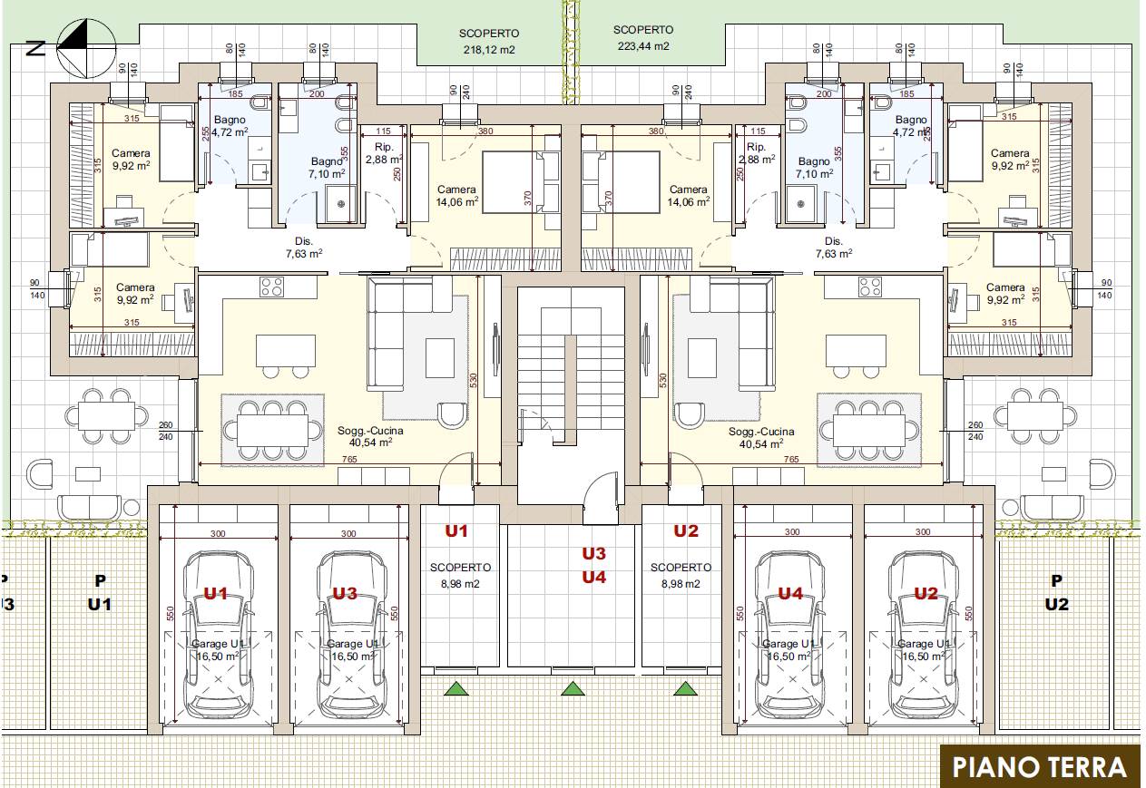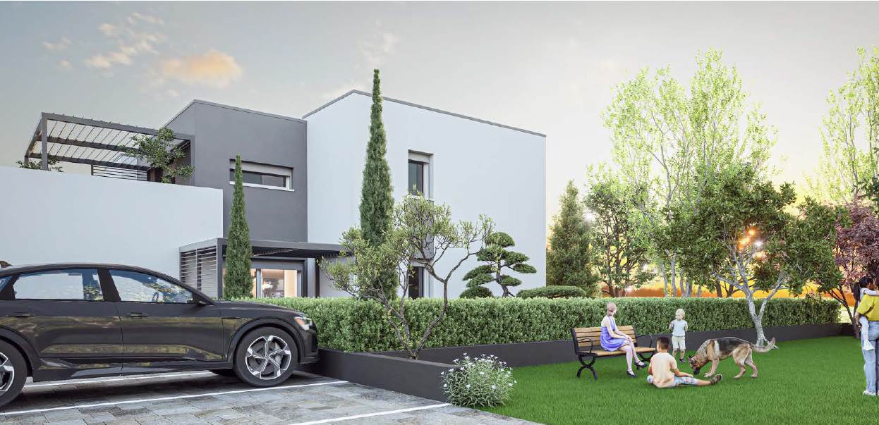 Ogni unità è progettata con attenzione ai dettagli, inclusi riscaldamento a pavimento e impianto fotovoltaico da 4,5 kW, assicurando efficienza energetica e comfort. Gli appartamenti al piano terra vantano un accesso indipendente e uno spazio verde privato, collegato alla zona giorno tramite un'ampia vetrata scorrevole. I due appartamenti al piano primo, con le stesse caratteristiche distributive di quelli del piano terra, sono dotati di un' ampia terrazza di 37 mq collegata direttamente al living. A disposizione degli appartamenti inoltre un garage singolo ed un posto auto privato oltre a parcheggi comuni per i visitatori.